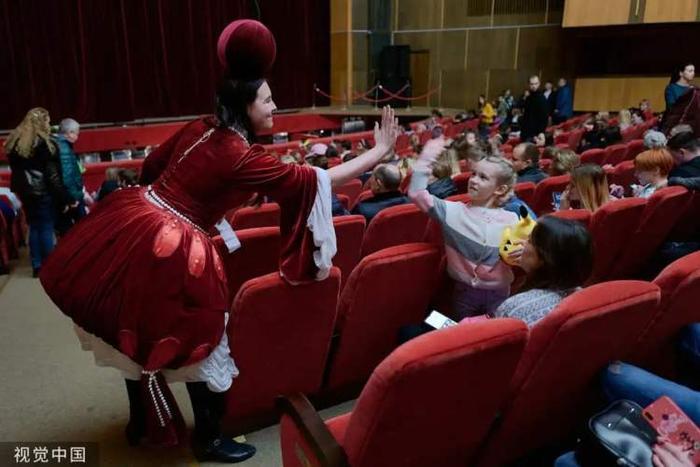 日,乌克兰第聂伯罗,在空袭警报和部分停电的情况下,歌剧院的一名演员在新年为孩子和他们的亲属准备了白雪皇后表演。