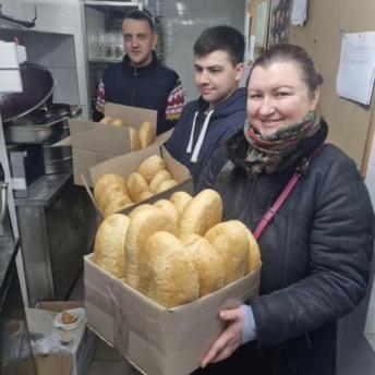 第聂伯罗的志愿者正在准备面包。/受访者提供
