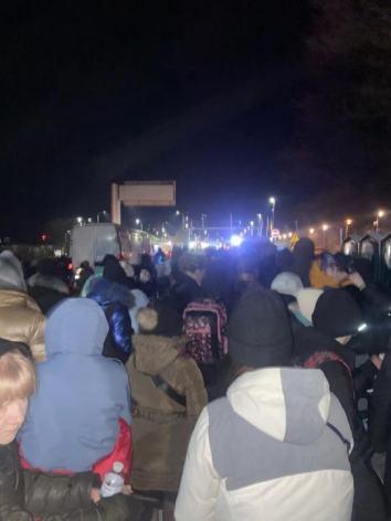乌克兰边境,人们等待离开。