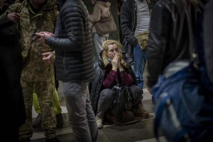 当地时间2022年2月24日,乌克兰首都基辅,一名女子在等待火车。