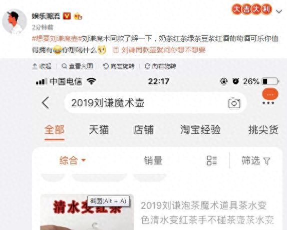魔术结束还没到一个小时,淘宝便有商家开始打起了“刘谦酒壶”的生意。