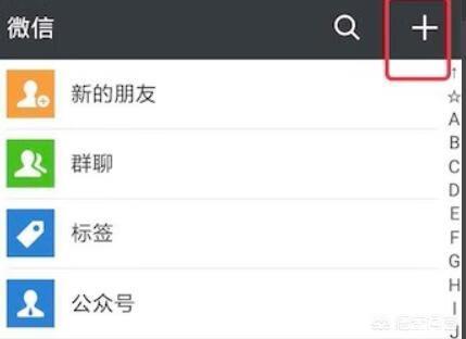 首先打开微信,然后点击下边的‘通讯录’,在通讯录页面,点击右上角的“+”号图标。