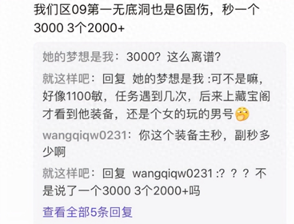 现在固伤门派中普陀山和无底洞的玩家是比较多的,因为他们秒的数据是比较高的,上面的这位玩家表示,他们区109级的第一无底洞带着六条固伤的灵饰,主秒3000副秒2000多,而且这个无底洞的敏捷属性都达到了1100,你们认为上面的这位玩家所说的是真的吗?小编感觉是真的,因为小编真的见过这样的无底洞,但是那样的无底洞就是109级固伤输出的极限了,没办法再继续提升了。