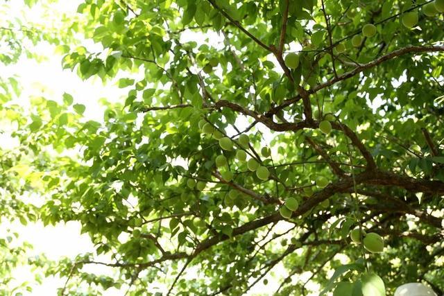 一扇熏风入座凉,轻云微雨弄晴光,绿团梅子未成黄。