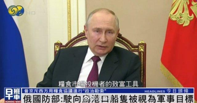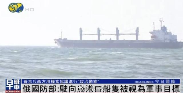 俄国防部:驶向乌港口船只将被视为军事目标