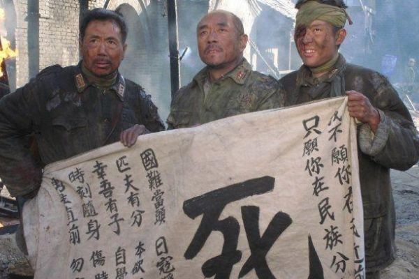 最让人感动的就是“我不愿你在我人前尽孝,只愿你在民族份上尽忠”。这位老先生可以将自己的儿子送到战场,还为他赠予“死字旗”,只是为了让他安心上战场杀倭寇。对于这位四川老农来说,他的儿子很重要,但是在国家和民族面前,他必须有所作为,这是何等的血性?这又是何等的高尚情怀?