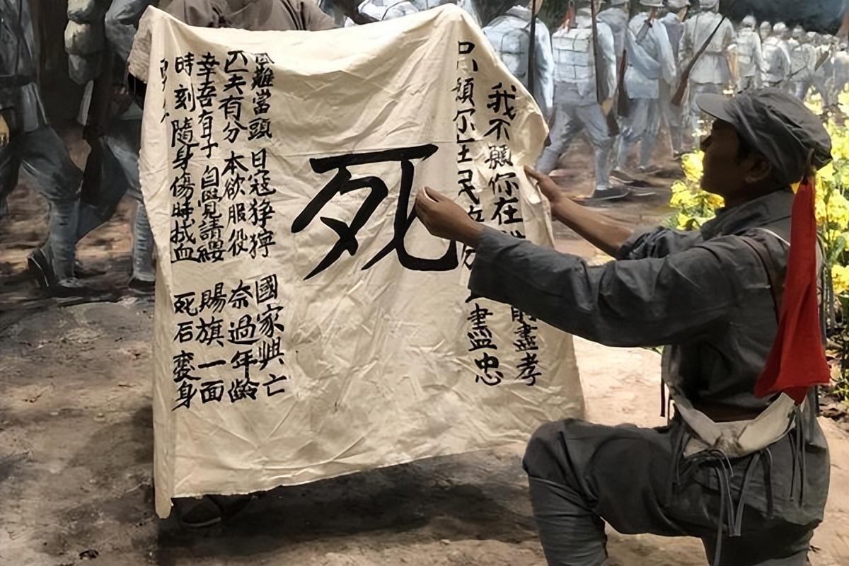 这个“死字旗”是当时一名百姓送给自己儿子的,这名战士名字叫王建堂,本来是一个教师,但是弃笔投戎参加部队出川抗日。