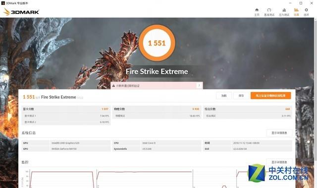 作为一款轻薄笔记本产品,戴尔灵越5488依然拥有良好的图形性能。通过满血版MX150独显的加持,戴尔灵越5488在3DMARK FSE模式得到了1551分,虽说游玩各大单机大作还是很有压力的,但运行诸如LOL、DNF、堡垒之夜等游戏还是足以胜任的,并且在运行支持图形加速的专业软件时也能够起到良好的辅助作用。