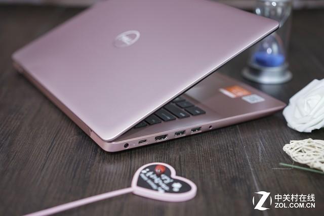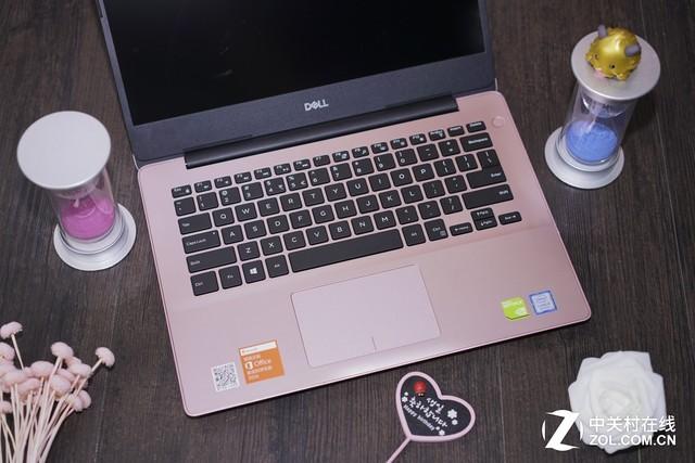 我们今天评测的这台戴尔灵越5488是元気粉版本,粉嫩的金属A面中间带有亮银色戴尔LOGO,简洁中流露出出众的质感。