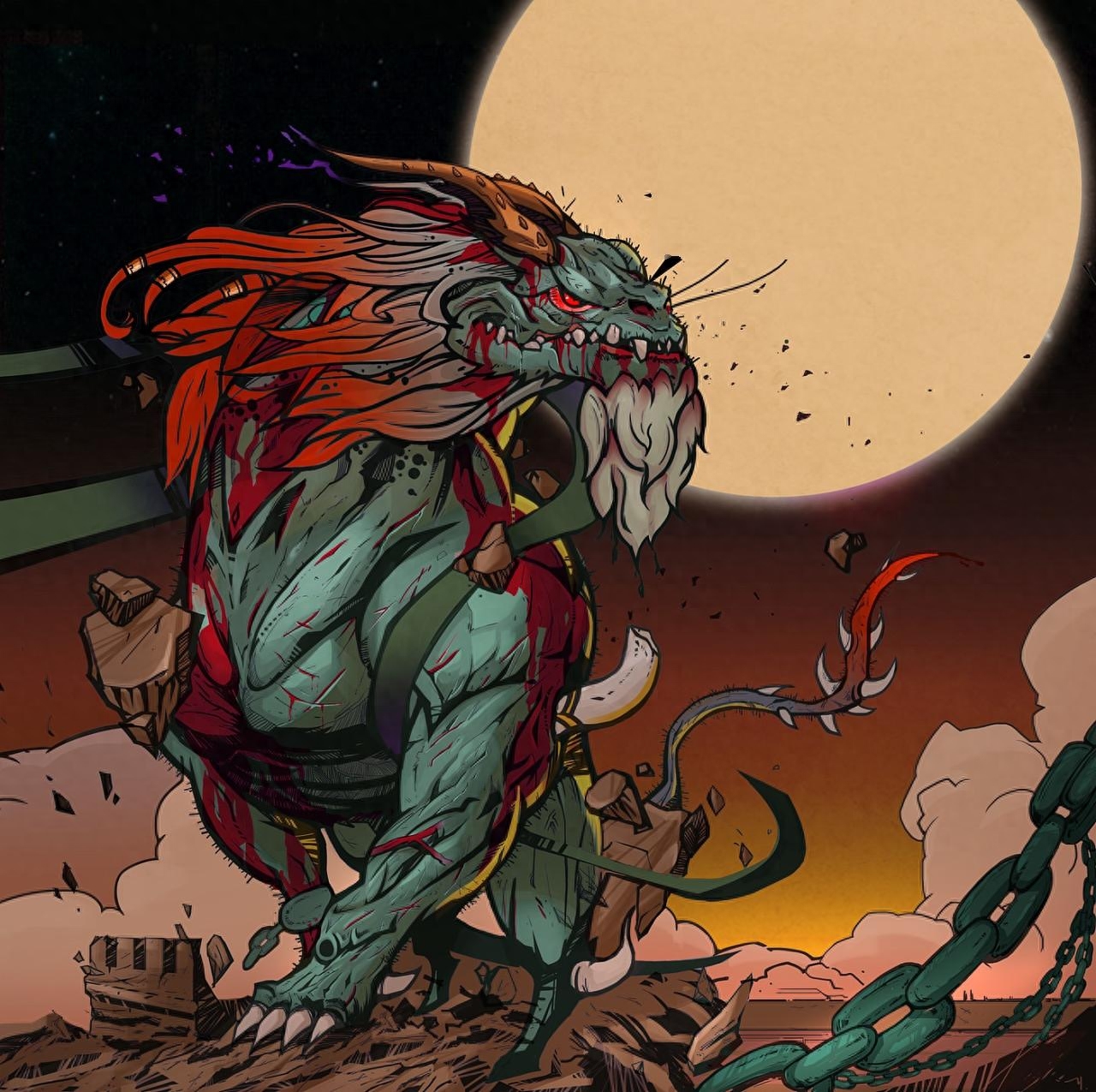烛龙的大致特征就是长着人的脸,蛇的身体,浑身通红,身上千里,两只眼睛是竖着长的。更神奇的是,当它睁开双眼时,天就变成白昼;当它闭上双眼时,天就变成黑夜;它的呼吸是风,吹出冷气就令世界变成冬天;呼出热气就令世界变成夏天;还能控制雨水。不用吃饭,也不用休息,居住在钟山或章尾山。