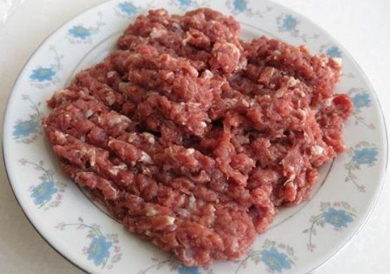 羊肉选用后腿肉,用它来做肉馅口感更棒,剁成细腻的肉馅,放在碗里。