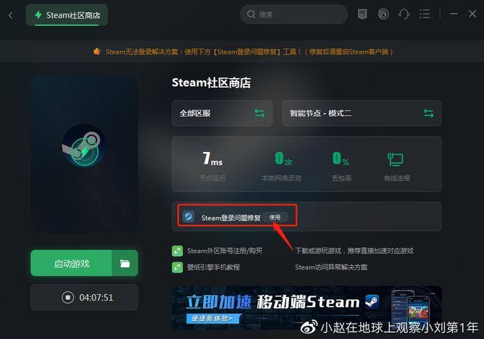 如果加速完成之后玩家还是无法打开steam官网,那么可能就是官网本身存在问题,可以使用一键修复功能,这个也是奇游特有的功能,在steam加速的详情界面会有一个登陆问题修复功能,此功能可以解决steam平台登录遇到的绝大多数问题,点击功能后面的使用按钮,只需要等待几秒的时间就可快速解决问题了,然后玩家再重新回到steam官网,此前遇到的所有问题都将不复存在。