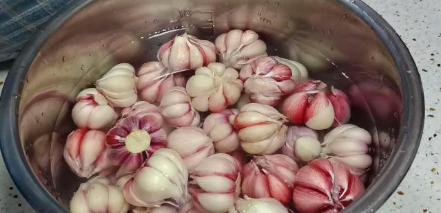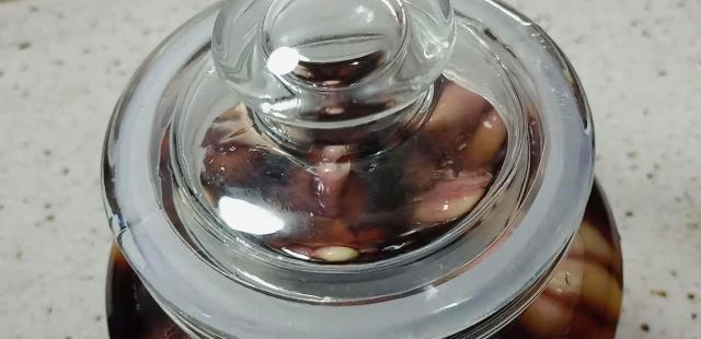 5.将晾凉的料汁倒入,这个配方很好,料汁会刚好腌过蒜。6.泡20几天就可以吃了,但泡的时间长一点,味道会更好。