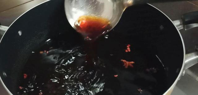 3.准备700克白醋,300克香醋,500克白糖,150克清水,花椒20几粒,八角一颗,一起倒入锅中烧开,烧开后晾凉。
