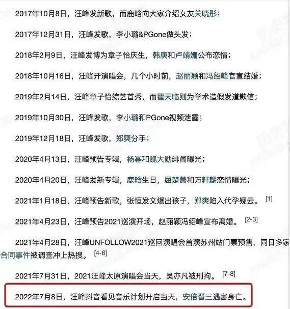 7月8号,汪峰看见音乐计划开启,安倍晋三遇害身亡。