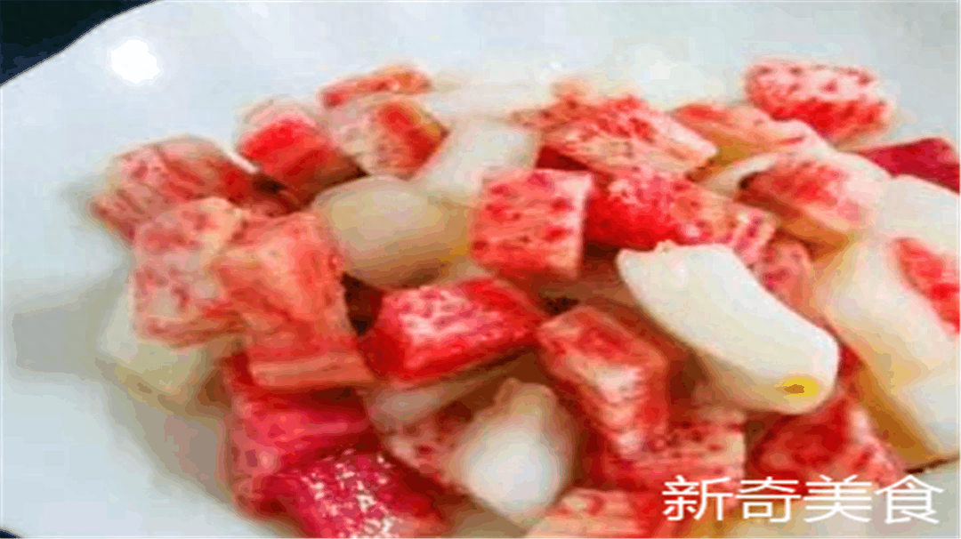 这道菜听起来让人以为就是很多一盘杂烩,但当这盘菜上桌之后,额,你确定不是上错菜了吗,就是一盘水果,而且只有红白两个颜色,你确定这盘菜不叫“五花肉”吗,“老板,我要退货,我要退货。”