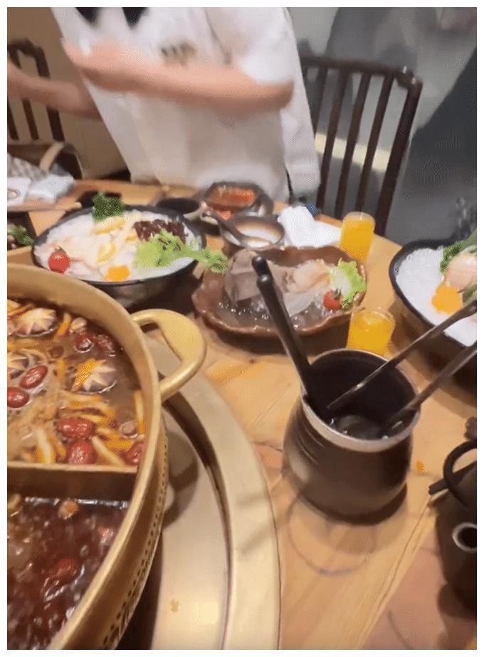 曝光的画面中,黎耀祥、郭少芸以及梁烈唯(已改名为梁竞徽)齐聚杭州某餐厅吃麻辣火锅,桌上摆满了各种肉类以及蔬菜,相当丰盛,隔着屏幕都能让人食指大动。