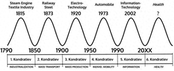 为什么会有这样一个周期存在?康德拉季耶夫认为,科学技术是生产力发展的动力。生产力发展的周期是由科学技术发展的周期决定的,所以,每当一个新的技术时代来临的时候,就是新周期的开始。