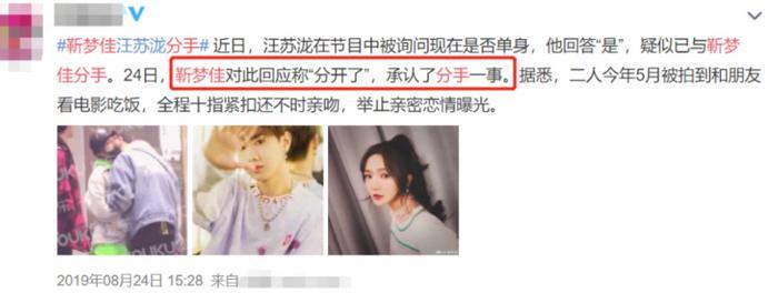 而且如果该网友说的是真的,那么汪苏泷和该网友的姐姐也早已分手了,因为在这几年中,汪苏泷也曾被拍到和其他人的恋情。还记得2019年时,汪苏泷就被拍到和湖南台主持人靳梦佳当街拥吻,两人恋情也因此曝光,不过双方都没有正式回应过。