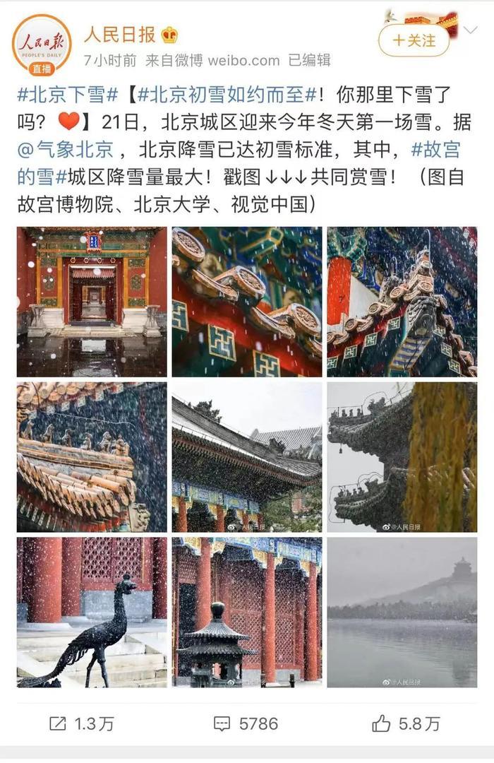 近日我国北方多地迎来初雪,#北京下雪# #故宫的雪#等话题纷纷冲上热搜。