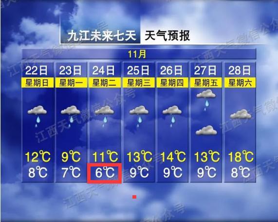 下周一至周二除赣州外,全省大部的最低气温将跌至10℃以下,最低的九江已经跌至零下6℃。