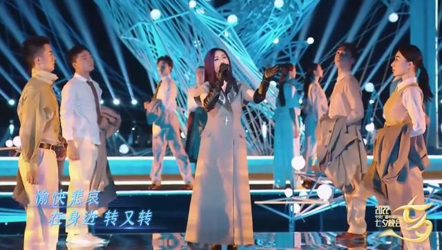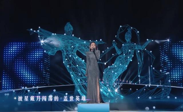 杨千嬅依旧是一头标志性的紫色短发,灰色西装裙干练大气,造型非常适合她演唱的这首《漫步人生路》,歌声洒脱肆意。