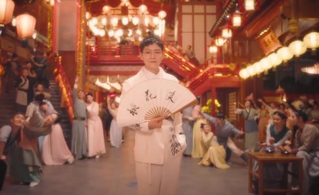 这不,他在表演过程中换上国风现代装,戴着金丝边眼镜,看上去帅气了不少,人还是得找对自己的风格。