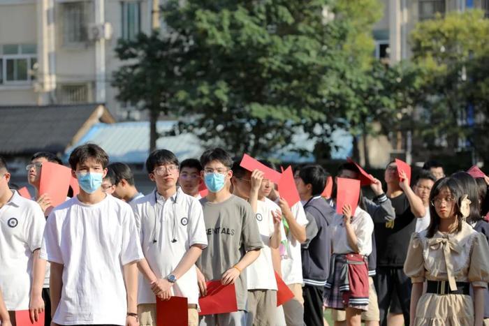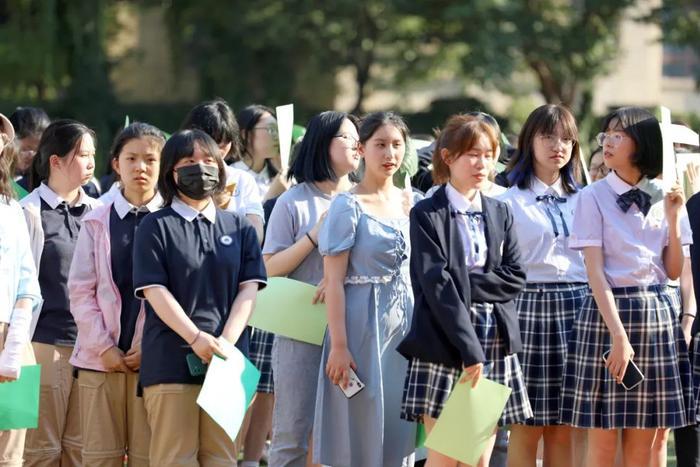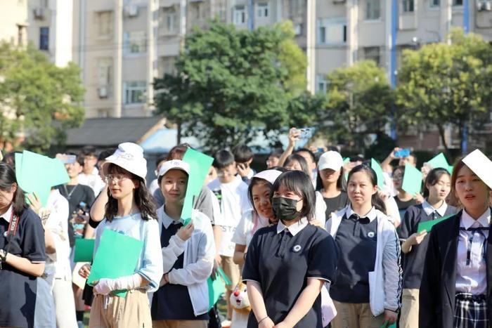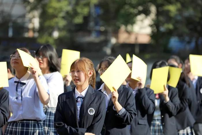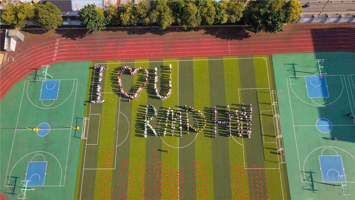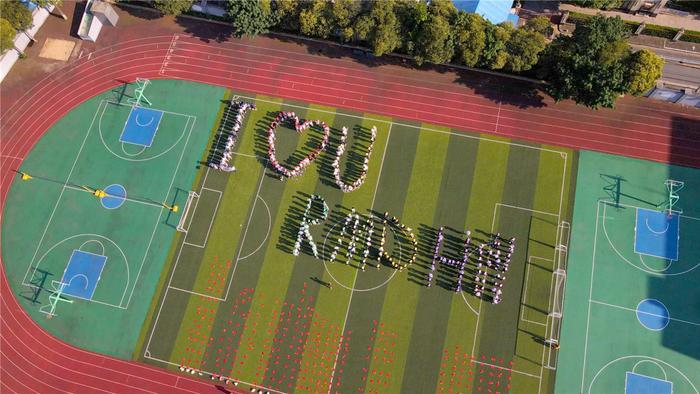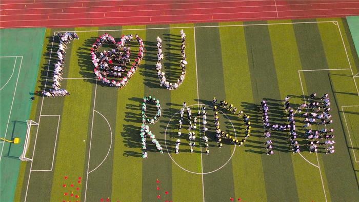 同学们举起手中的卡片,排出“I♡U ,RM(银杏叶)HW”的字样,让2021年初夏这份难忘的记忆永远定格。