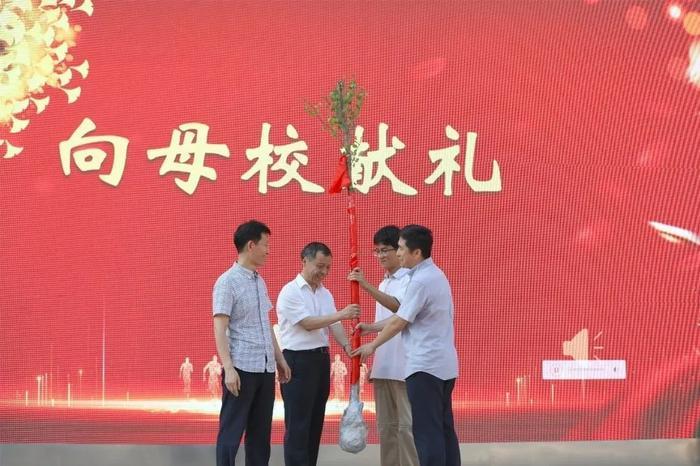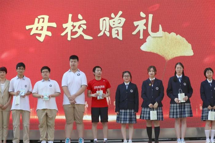 作为银杏树下成长的孩子,2021届高三毕业生精心准备了一份礼物送给母校——一棵银杏树苗,金陵中学集团人民中学执行校长吴国锋接过礼物。