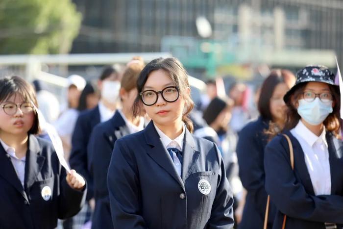 青春的学子们,和老师手拉着手走来,穿过精心设计的场景门,重温校园记忆。