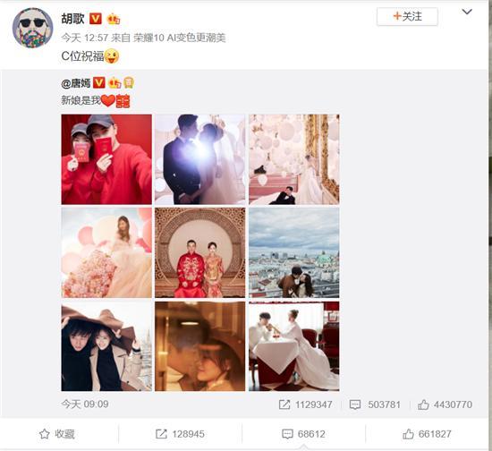 因为唐嫣罗晋大婚,胡歌也跟着上了热搜。当唐嫣和罗晋官宣结婚的时候,他们娱乐圈的朋友也是用不同的方式送上自己的祝福,胡歌的祝福更显得很独特:C位祝福!只是胡歌的这个C位祝福却引起大波催婚团上线!有人直言胡歌是C位单身,而且再度被人想到他和霍建华、杨幂、刘诗诗已经唐嫣等演的那部戏,看着一各个的都已经结婚甚至生子,而胡歌还在单身,催婚团已经不止一次上线了!