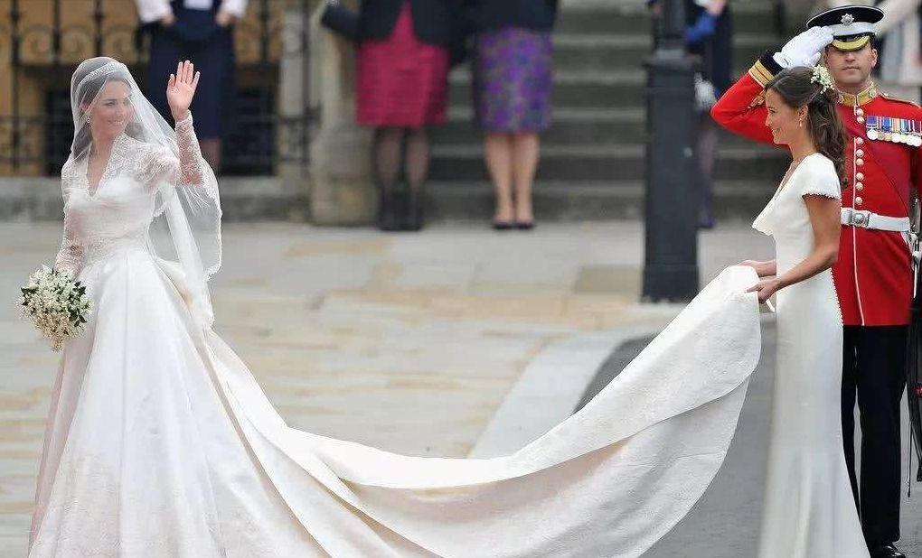 头纱并不是特别的长,感觉就是普通婚纱的那种程度,凯特嫁给了英国的第顺位继承人,也就是说很有可能会成为未来的王后,所以一举一动都特别的严格,一切都按照王室的规矩来执行。
