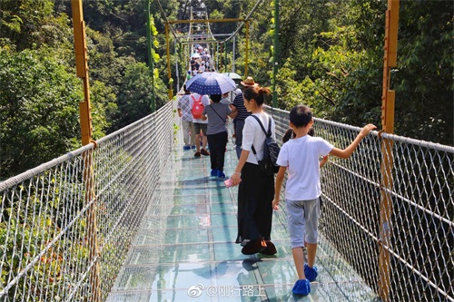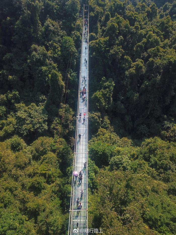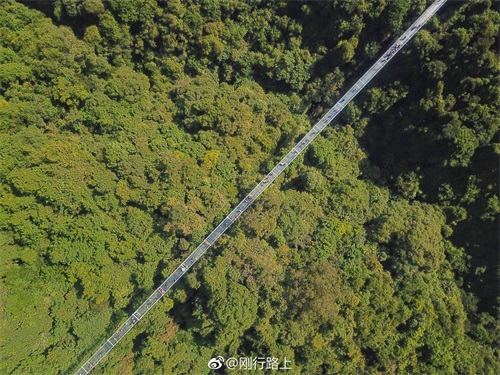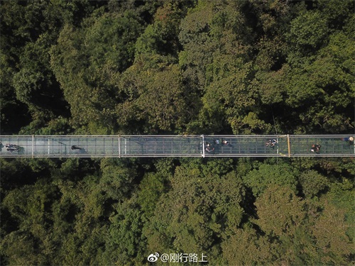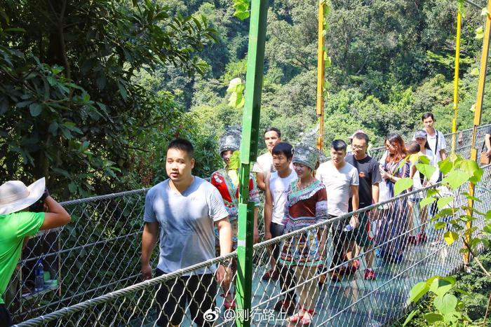 在融水双龙沟景区感受广西第一条悬索玻璃桥,这里总长199.9米,高52.0米,谐音“520”的意思。这是一个不固定的玻璃桥,好似一条白龙游,蜿蜒在郁郁森林之中,行走在上面,可以体验喝醉了行走的感觉,然后再高呼:我爱你,或许你就赢得对方的心咯。 @微博旅游