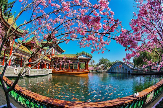 园区古建筑与园林巧妙结合,气势雄伟,金碧辉煌,雕梁画栋,古色新香,溢彩流光,雍容华贵。全园回廊环合,晴雨皆宜,且冬暖夏凉,是夏天的避暑圣地,馆阁、园林布局自然,构思巧妙。正门的仿古白石牌坊,壮观巍峨,巧夺天工。园中各类雕塑精品琳琅满目。惊世之作,当数已列入"大世界基尼斯之最"的大型浮雕瓷壁画《清明上河图》与巨幅砖雕《吐艳和鸣壁》,工艺精湛,无与伦比。有瓷雕巨擘之称的《三国演义》气势磅礴,栩栩如生。园中安置万世师表孔子肖像与为民请命的包拯立像供人瞻仰。艺林苑内赵泰来艺术宫陈列大量的青铜器、玉器、陶瓷艺术品与霍宗杰、赵少昂、杨善深三馆荟萃的古今名家书画,尤其是雅集馆内的190幅反映200多年前广州民间生活的通草画,是宝墨园的镇馆之宝,这些展馆系统展现中华民族文化源远流长。全园水景堪称一绝。园中澄湖流水,绿沼长河,三十多座石桥横跨旖旎河湖之上。紫洞舫弦歌袅袅,湖面上紫带虹飞。水中十万锦鲤翻红浪,柳岸游人笑开颜!竹溪、荔岛成为小孩玩水捉鱼的欢乐天地。登楼而望,远山近水,尽收眼底;若驾一叶扁舟,逍遥放棹,仿似置身蓬瀛。整个宝墨园是一座园林艺术宫,形成独特的人文景观。