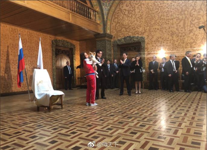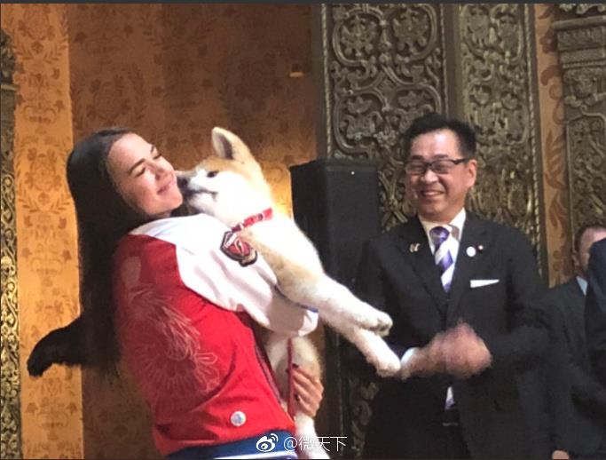 正在俄罗斯访问的日本首相安倍晋三周六参加活动,履行了此前的承诺,将一只3个月大的秋田犬送给了在平昌冬奥会获得冠军的俄罗斯花滑运动员阿林娜•扎吉托娃。此前,扎吉托娃在日本秋田县备战冬奥会期间看到了秋田犬后十分喜爱。秋田县政府和秋田犬保存会对此予以积极回应,提出愿赠送她一只小狗。秋田县以前也曾经送过普京一只秋田犬。(啊真的太可爱了,小微羡慕到想哭!)