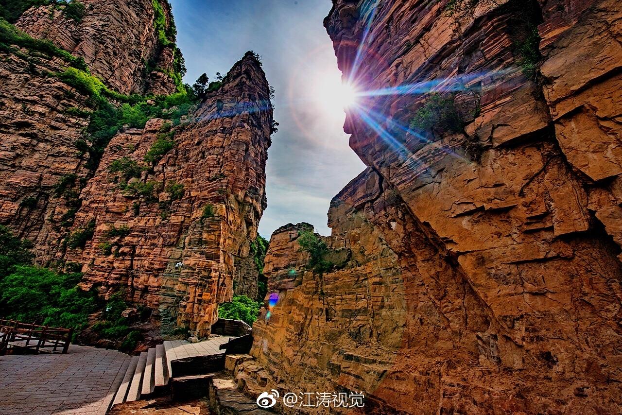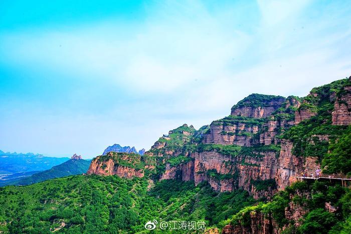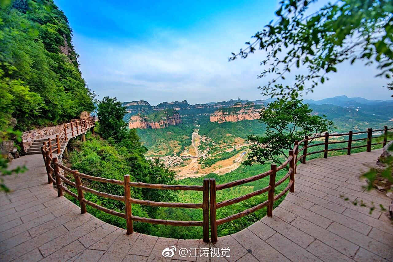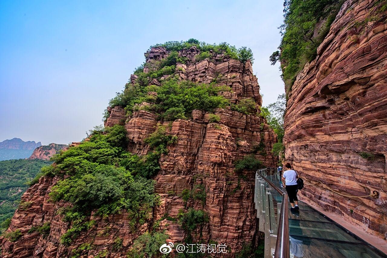 东太行景区266米的玻璃栈道围绕山体建在千米高的龙头崖上腰处,走在上面,脚下就是悬崖峭壁、万丈深渊,最为惊险刺激的是你走到哪,还伴有玻璃碎裂的“咔嚓”声特效。这种全身颤抖,心跳加快的感觉,你想不想体验一下?@东太行 @同程验客