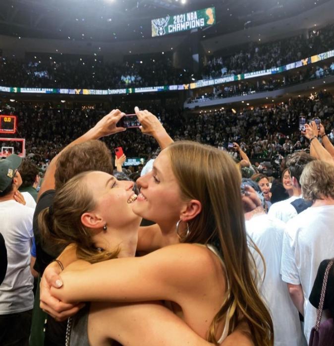 当一切落下帷幕,雄鹿成为总冠军球队时,Mallory Edens也是兴奋地抱住了自己的女友,再一次展现了她甜美的笑容。与好友一起在夺冠现场,Mallory Edens始终保持着一颗球迷的心,她一直在背后默默陪伴雄鹿,这是她自己家的球队,如今赢下了总冠军,她岂能不开心?