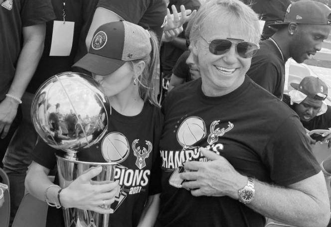笑得好甜!雄鹿老板女儿现身夺冠游行,与字母哥合照,亲吻奖杯