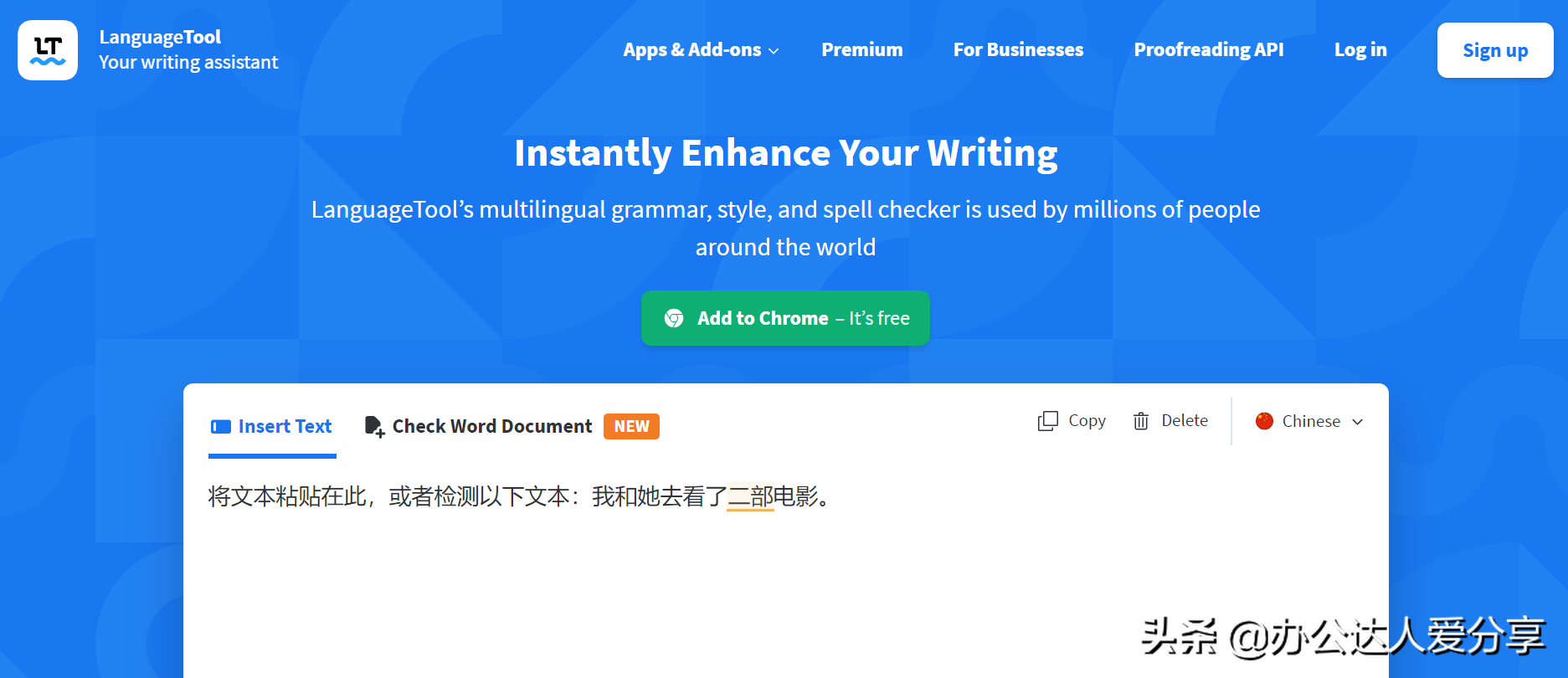 简单实用的27种语言拼写语法检查AI工具,非常优秀的校对工具。你可以直接将内容复制到网页进行校对,也可以直接下载插件放在浏览器或是Word加载项上使用。