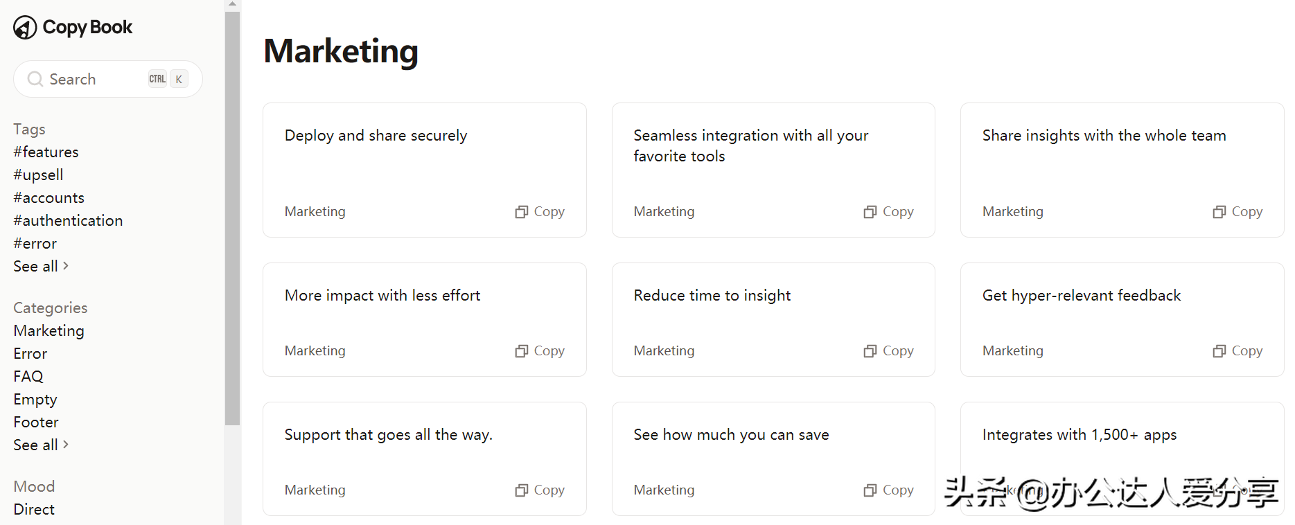 网络上常用的文案文本范例集合,你可以在这里找到各种产品文案,如404文案、验证文案、博客文案、常用问题、营销文案等等。