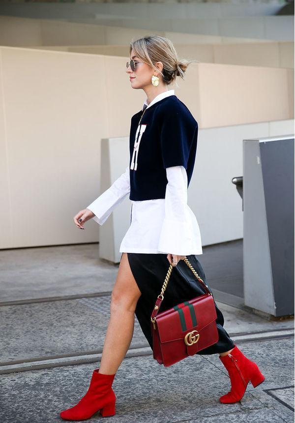 今年还有一个非常火爆的搭配方式,那就是"衬衣+马甲"。两种不同材质的时尚单品,两种色彩的拼接既能够展示出成熟女性的率性风格,也能够多一分层次的变化。这时下身选择性感洒脱风格的开叉裙,能够打造出职业女性的酷帅感,个性十足!Look3:衬衣+紧身裤