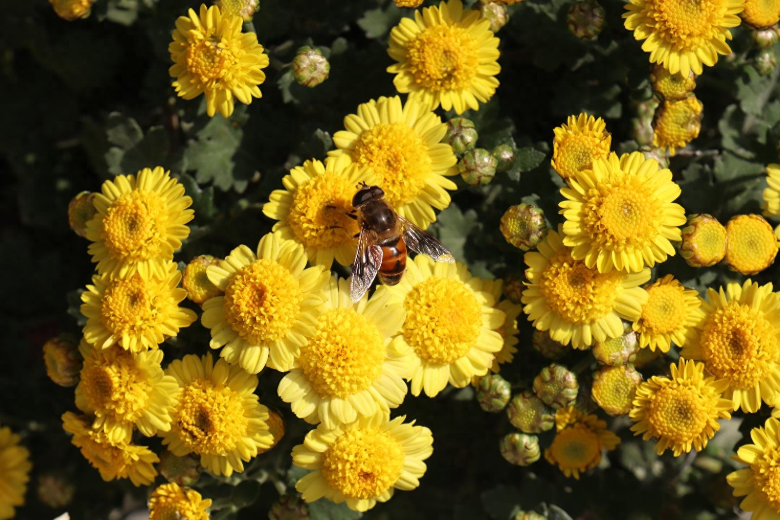 竹衣、绿小青、紫红翎、黄香梨、帅旗、麦浪、白金刚……金秋时节,天蓝云白风轻,步入中国花卉博览园,300多个品种的5万余盆菊花跃入眼帘,令人赏心悦目。