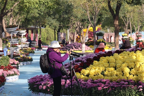 菊花花海吸引着摄影爱好者驻足拍摄,留住美好瞬间。菊花展将从9月26日开启,持续至10月26日。