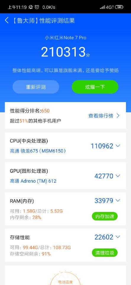 再来看看性能和续航:鲁大师跑分二十万,重度使用一天!