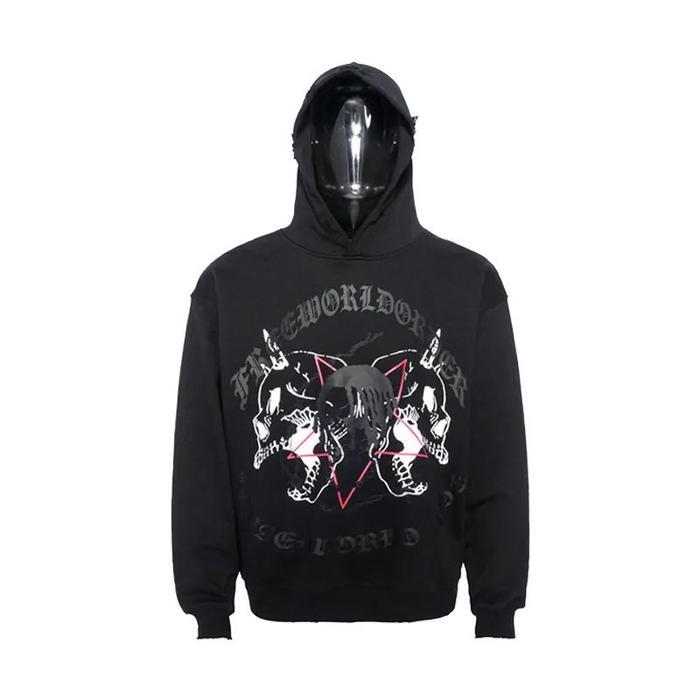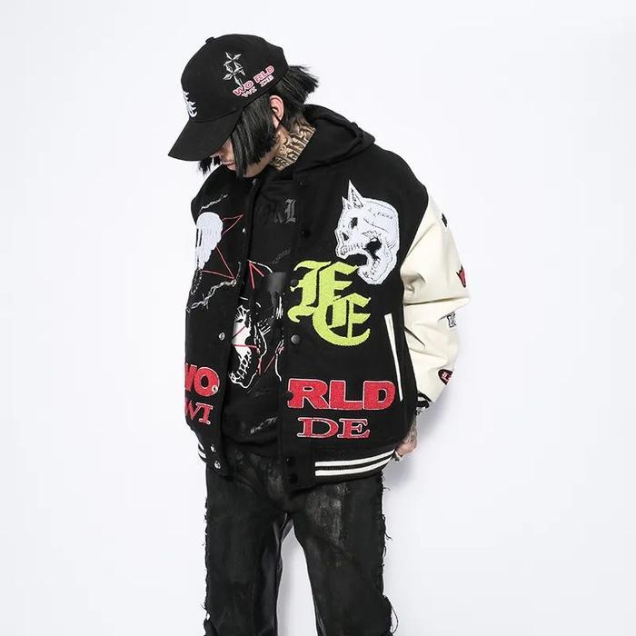 F.V.V.O 是FreeWorldOrder 缩写,意为自由、世界、秩序 。要享受追寻自由,要上进,翻墙看世界,也要划清底线,遵循秩序,不要内卷。潮牌只是一个“代名词“ 不要让他局限了认知。本次F.V.V.O和EVAE 联名推出系列名为「Bad World」 ,把地球也当作是一个生命的发展过程,初建的时候就已经考虑能量网格的排布,人和其他生物一样,通过日渐成熟的能量网,传递、沟通信息。网格的作用是规范、整齐划一,也让在它范围内运行的单体,产生集体共鸣。【Bad World】系列,以网格化的地球作为主要设计元素,“骷髅”也是F.V.V.O和EVAE 极具共鸣的两个单体碰撞之下的选择。