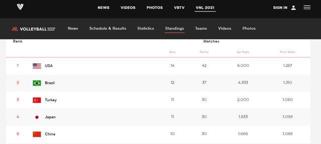 本场比赛前,美国女排是本届赛事唯一取得全胜的球队,14场比赛全部顺利过关,高居积分榜首位。出色的发挥,也让其成为了外界眼中头号夺冠热门。