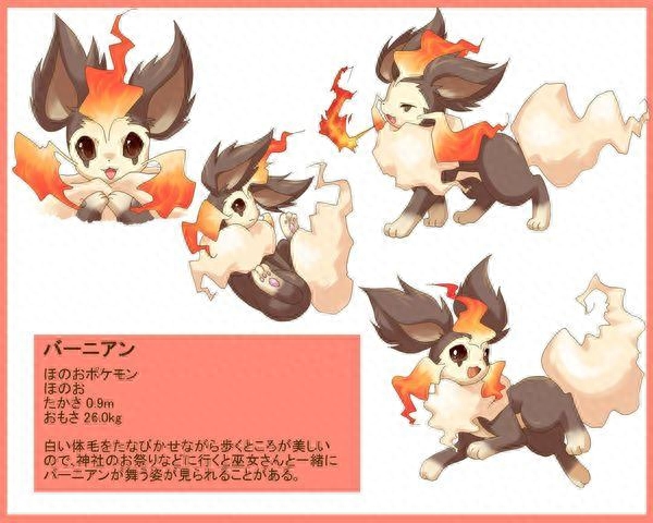 最新发现的伊布进化型之一,焰精灵,焰精灵不同于火精灵,其火焰的温度比火精灵的还要高,造型上焰精灵更具丰富性,脸部也是用火焰点缀,身体呈灰色,像是刚烧过的木炭颜色,尾巴为灰白色。
