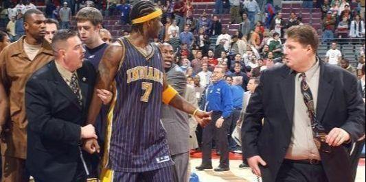 2004年11月19日,底特律活塞坐镇主场迎战印第安纳步行者,比赛还剩不到一分钟的时候,步行者队已经领先多大15分,比赛已经失去了悬念。不过,在一次活塞队的进攻中阿特斯特对本-华莱士来了1个比较粗鲁的犯规,引发双方冲突。