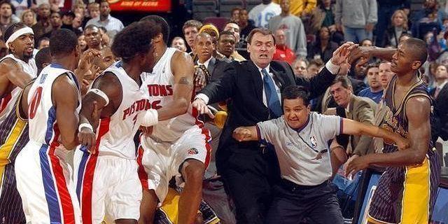 不仅是球员受到了惩罚,有五名球员被禁止踏入奥本山宫殿,而向阿特斯特丢啤酒的那位球迷更是被判处了30天监禁,奥本山宫殿的10多名安保人员也全部遭到解雇。这就是NBA历史上被称为群殴的代名词,最臭名昭彰的奥本山宫殿事件。