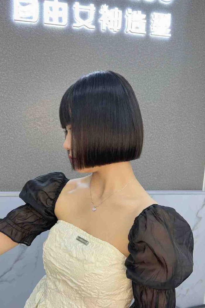 柔顺的短发,剪个一刀切的造型,简单显高级,时尚感爆棚,是很多女孩子都比较向往的发型。